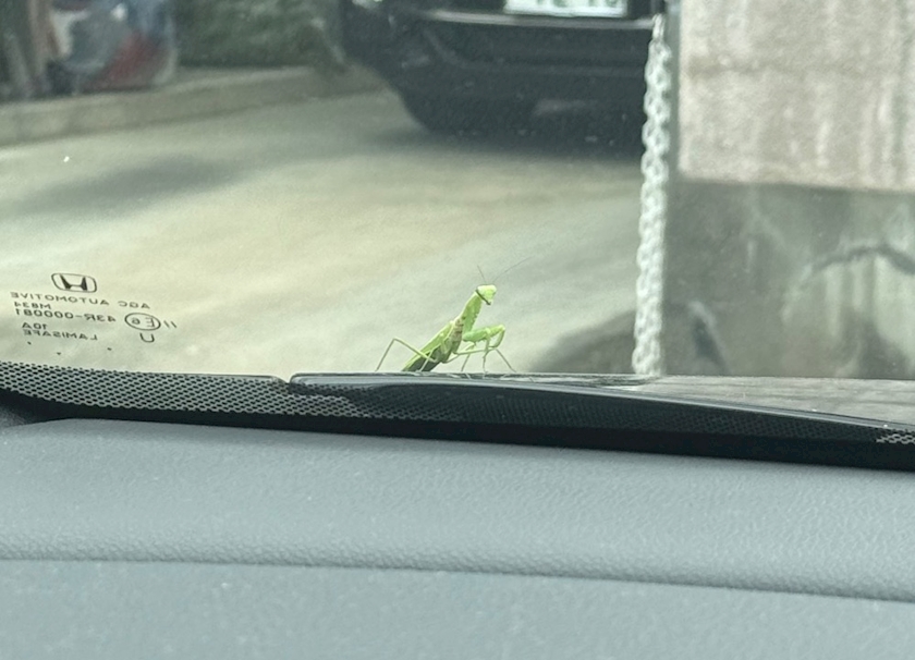 なんかさ、こないだ車の中にカマキリいたじゃん、