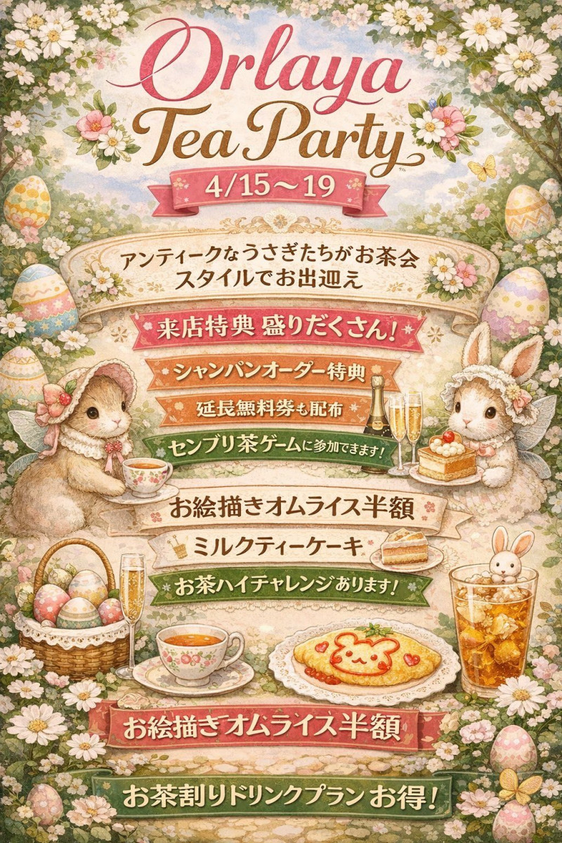 ふんわり春の風といっしょに、 妖精たちがあなたをおもてなし🧚♀️✨ ※お時間はきらきら気まぐれに変更されることがあります💫 気になるキャストのSNSはフォロー&チェックしてね🪶 🎀オルレアティーパーティ まもなくスタート🎀 夢みたいなひとときをご一緒に…☕️💭 🪽オリシャンオーダーで \なんと1時間延長無料🫧/ #コンカフェ #コンカフェキャスト #コンカフェ求人 #池袋 #コンカフェ嬢