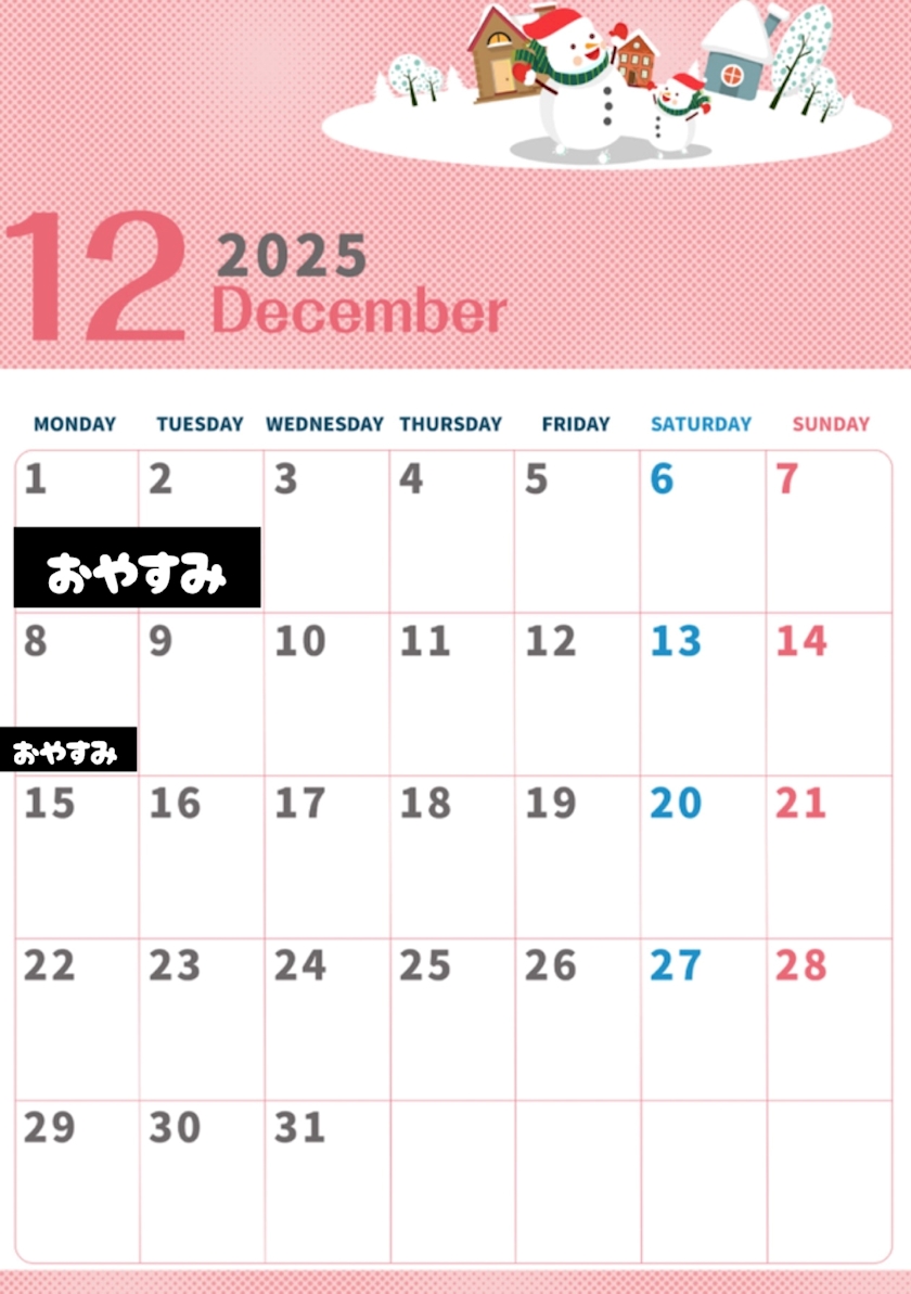 8日(月)はおやすみ⭐️
