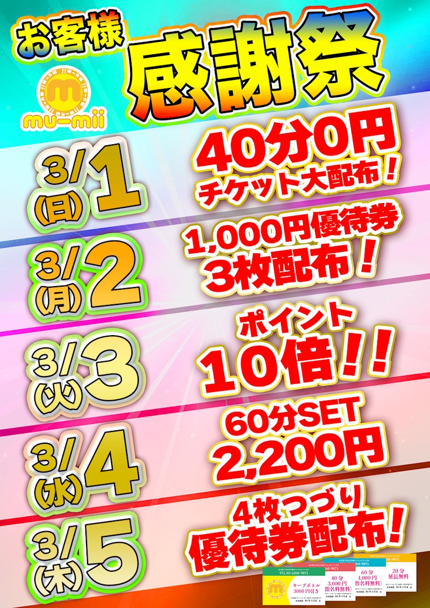 本日のイベント&出勤情報☆0305☆